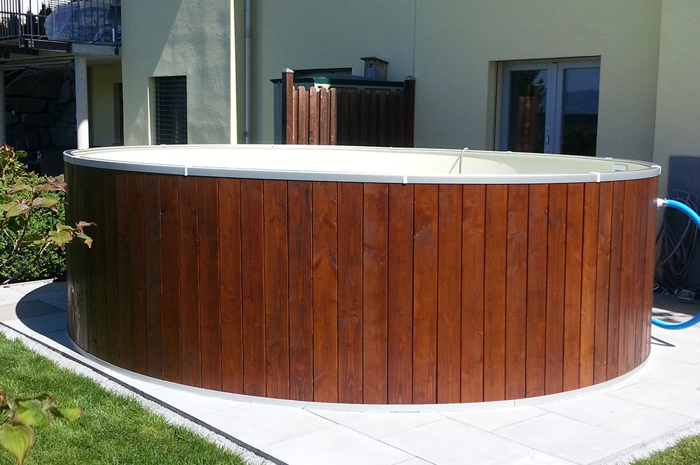 Die Rüegg Udo AG bietet Ihnen Top Aufstell-Schwimmbecken im umfangreichen Rüegg-Set an. Die beiden Modelle FUN METAL und FUN WOOD unterscheiden sich durch die Verkleidung. Das Modell FUN WOOD ist ein doppelwandiger Pool mit einer hochwertigen Stahlwand und einer naturbelassenen Holzverkleidung, die individuell imprägniert oder lasiert werden kann.