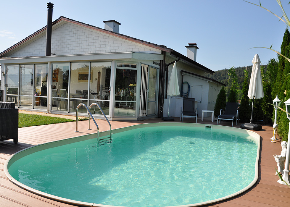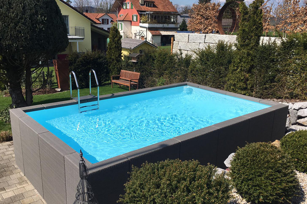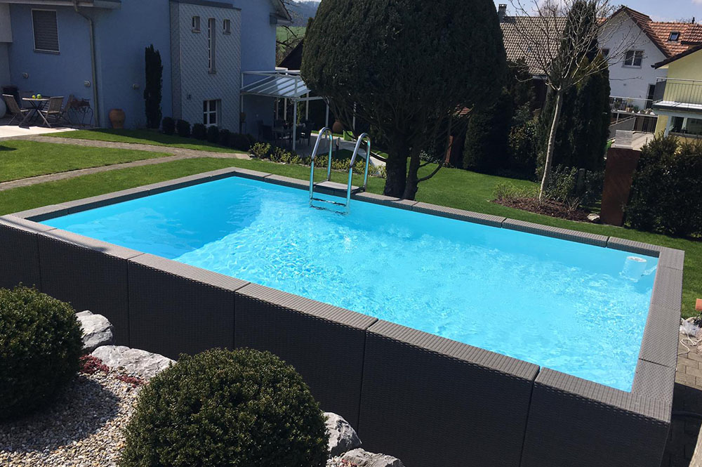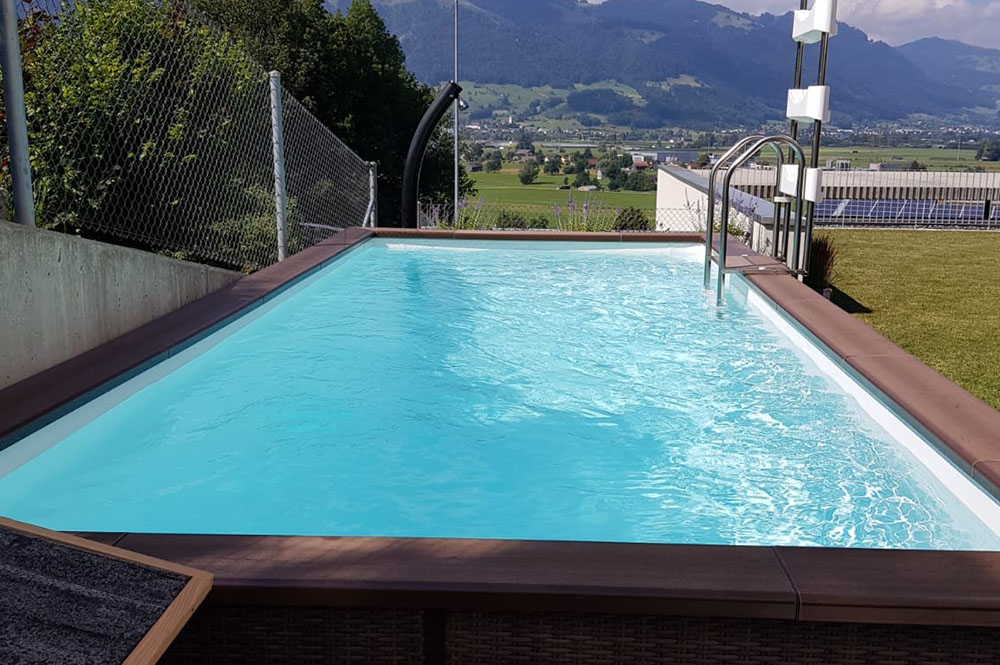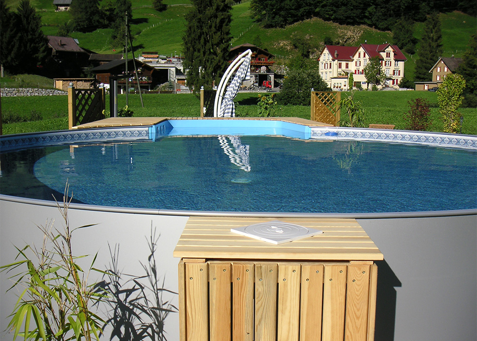 Die Stahlwandbecken bieten wir im Set an. Im Preis inbegriffen sind Zubehör und Abdeckungen. Die detaillierte Beschreibung zum Angebot und den Massen finden Sie in der Preisliste.