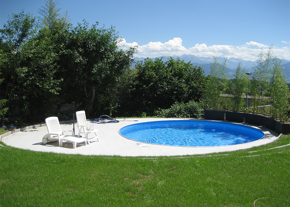 Das Rüegg-Set beinhaltet alles, was Sie für ein herrliches Badevergnügen benötigen: Becken, Filteranlage, Skimmer, Edelstahlleiter und Handbodensauggarnitur sowie Düse mit Verbindungsschläuchen.