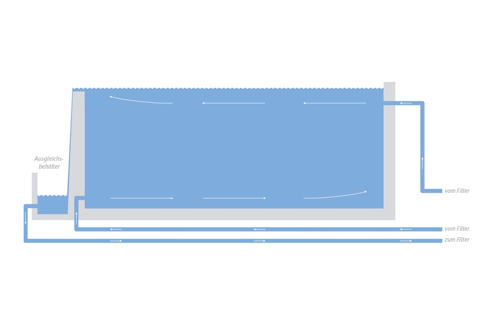 Bei einem Schwimmbad mit Überlaufrinne wird das Becken ständig überflutet. Das Wasser läuft über Rinne, Rinnenabläufe und Sammelleitung in einen Ausgleichsbehälter und wird danach zur Filteranlage geleitet. Das sorgt für eine optimale Reinigung der Wasseroberfläche und für ein ungetrübtes Badevergnügen.